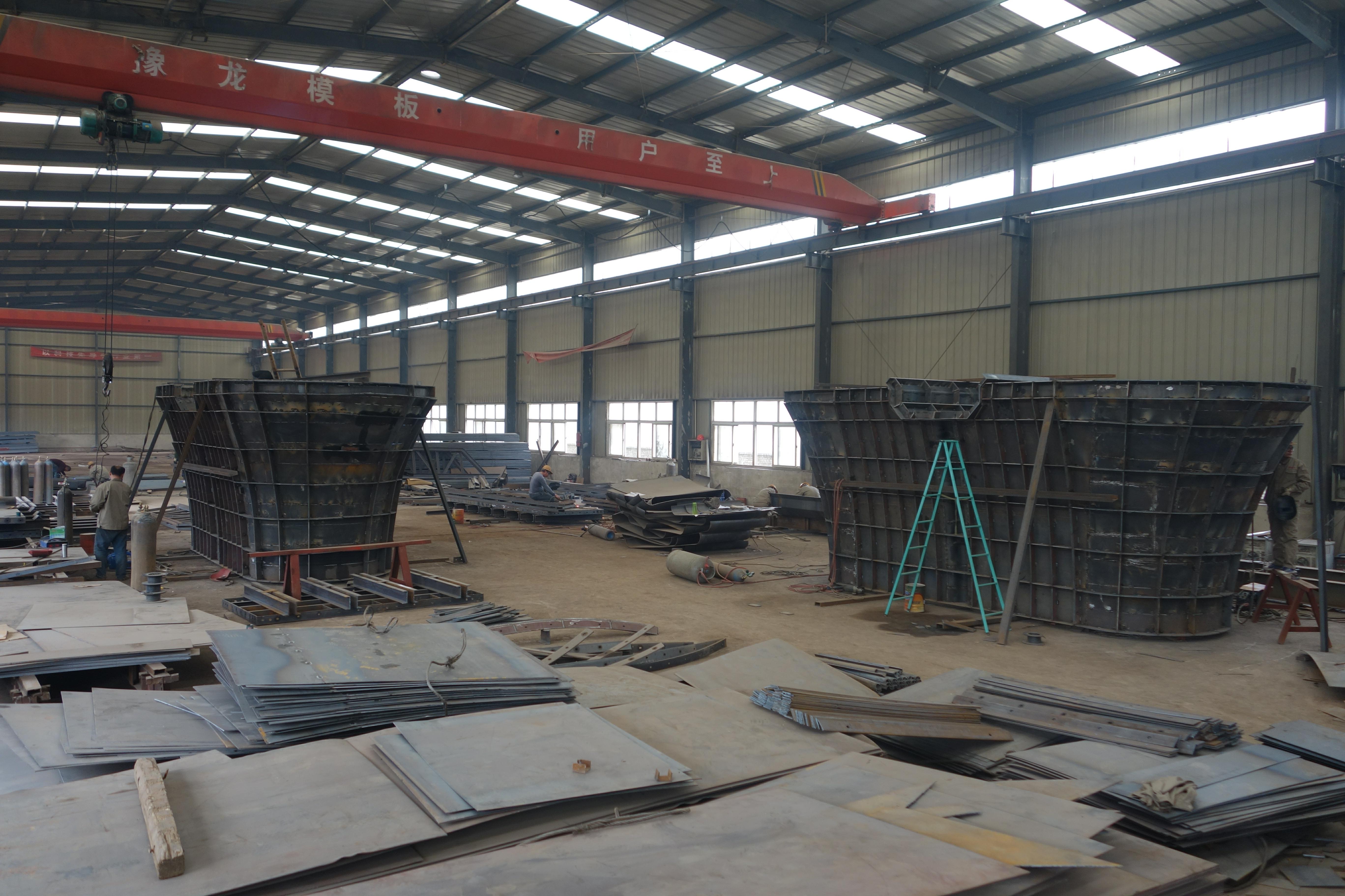 高铁双曲线墩柱模板车间加工现场